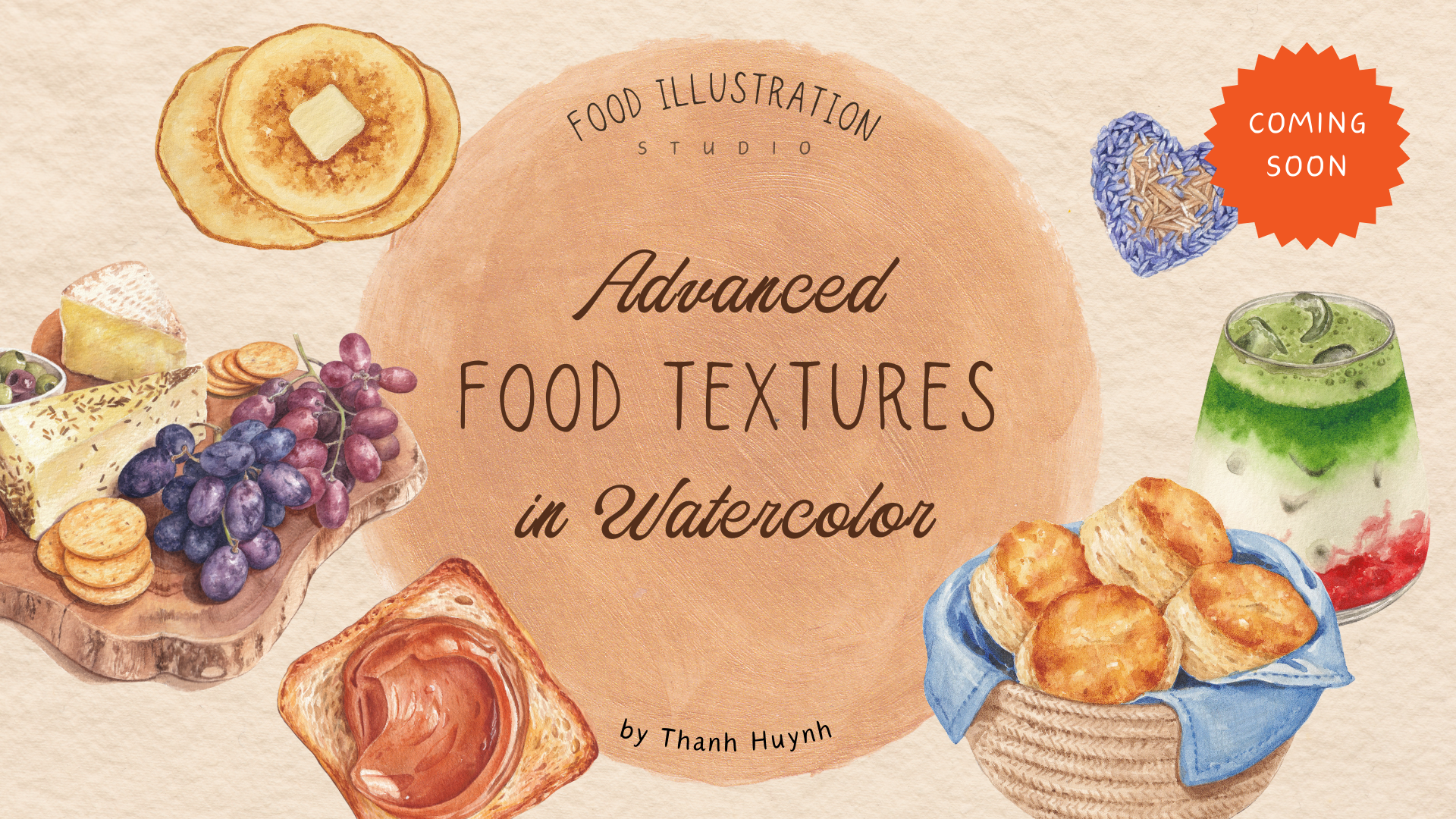đĽ Introducing my brand-new course, ¨Advanced Food Textures in Watercolor¨, designed to help you create realistic, eye-catching food paintings with depth, vibrant details, and mouthwatering textures.
